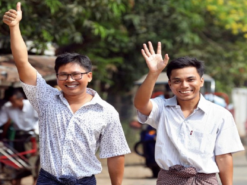 न्यूज एजेंसी ने चश्मदीदों के हवाले से जानकारी दी है कि मंगलवार को दोनों पत्रकारों, वा लोन और क्याव सो को यंगून की जेल से बाहर निकलते हुए देखा है। उन्हें सितंबर 2017 में सजा सुनाई गई थी। वे 12 दिसंबर 2017 से जेल में थे।