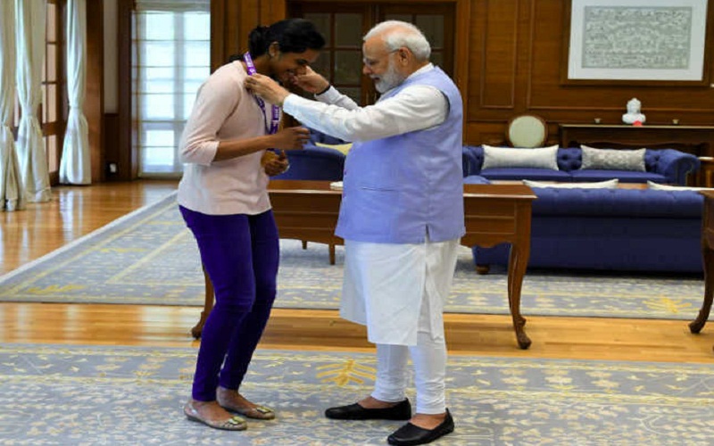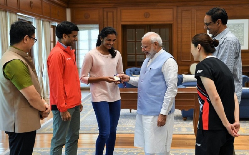 पीएम मोदी ने इस मौके पर कहा कि सिंधु भारत का गौरव हैं और एक चैंपियन भी, जिन्होंने देश के लिए एक स्वर्ण पदक ही नहीं, बल्कि बेशुमार सम्मान भी जीता है। कहा कि पीवी सिंधु से मिलकर बहुत खुशी हुई। बताते चलें कि इससे पहले खेल मंत्री किरेन रिजिजू ने भी सिंधु का सम्मान किया। साथ ही सिंधु को 10 लाख रुपए का चेक सौंपा।