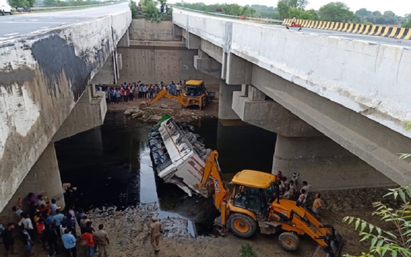 बताते हैं कि अवध डिपो की जनरथ एक्सप्रेस बस लखनऊ से दिल्ली जा रही थी। इसी दौरान रास्ते में सुबह करीब साढ़े 4 बजे आगरा के एत्त्ममादपुर इलाके में चौहान गांव के पास झरना नाले में जा गिरी। सूचना मिलने पर मौके पर पहुंची थाना पुलिस ने जल्द ही जेसीबी और क्रेन मंगवाकर बस को निकलवाने का प्रयास किया।