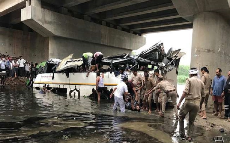 समरनीति न्यूज, डेस्कः आगरा के पास यमुना एक्सप्रेस-वे के पास हुए हादसे में सोमवार सुबह 29 लोगों की मौत हो गई। यह हादसा उस वक्त हुआ जब लखनऊ से दिल्ली जा रही अवध डिपो की एक बस आगरा के पास झरना नाले में जा गिरी। घटना की जानकारी मिलते ही उच्चाधिकारियों नेल मौके पर पहुंचकर बचाव कार्य शुरु कराया। बताते हैं कि इस हादसे में करीब 2 दर्जन लोग घायल भी हुए हैं। वहीं दूसरी ओर यूपी के सीएम योगी आदित्यनाथ ने इस हादसे पर दुख जताया है। साथ ही मरने वालों के परिजनों को मुआवजे की घोषणा की है। सरकार ने सभी मृतकों के परिजनों को 5-5 लाख रुपए मुआवजा की घोषणा की है। घायलों की हालत गंभीर बनी हुई है।