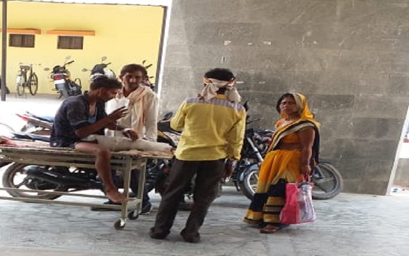 जिला अस्पताल में बिना स्वास्थ्य कर्मी या वार्ड ब्याय के मरीज और तीमारदार।