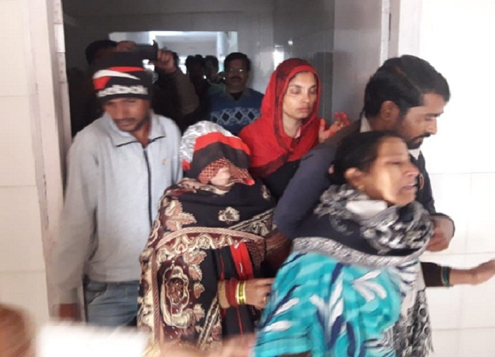 हादसे के बाद जिला अस्पताल में घायल और रोते-बिलखते परिजन।