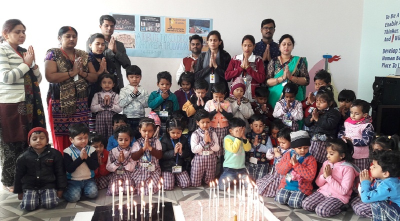 इस मौके पर स्कूल के सभी बच्चे और स्कूल स्टाफ के अलावा प्रबंधक आदि मौजूद रहे। प्रबंधक मनु बंसल ने कहा कि उनके स्कूल में सोमवार को शहीद जवानों को श्रद्धांजलि देने के लिए प्रार्थनासभा का भी आयोजन किया गया।