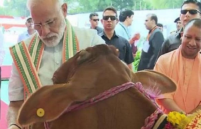 समरनीति न्यूज, मथुराः आज बुधवार को अपने तयशुदा कार्यक्रम के तहत भगवान कृष्ण और राधे की धरती मथुरा पहुंचे प्रधानमंत्री नरेंद्र मोदी का सीएम योगी आदित्यनाथ समेत अन्य नेताओं ने स्वागत किया। सुबह करीब 11 बजे यहां पहुंचे प्रधानमंत्री नरेंद्र मोदी ने सीधे वेटेरिनरी विश्वविद्यालय पहुंचकर वहां आयोजित दो दिवसीय पं. दीनदयाल वृहद पशु आरोग्य मेला का शुभारंभ किया। इस दौरान प्रधानमंत्री ने गो सेवा करते हुए पशु पालकों से मुलाकात भी की। मेले का शुभारंभ करते हुए कहा कि देश में गाय और ऊं का नाम सुनते ही कुछ लोगों के बाल खड़े हो जाते हैं।
