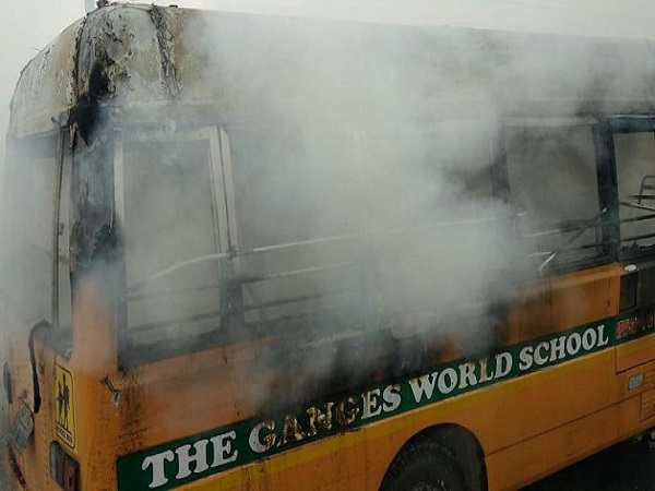 समरनीति न्यूज, कानपुरः शहर से बच्चों को लेकर महाराजपुर के रूमा स्थित वर्ल्ड गैंजेस स्कूल जा रही एक बस में आग लग गई। आग शार्ट सर्किट के कारण लगी और देखते ही देखते उसमें से लपटे उठने लगीं। बस में बैठे बच्चें डर से चिल्लाने लगे। हालांकि बस चालक ने सूझबूझ दिखाई और बच्चों को स्थानीय लोगों की मदद से नीचे उतारकर सुरक्षित बचा लिया। मौके पर पहुंची दमकल की गाड़ी ने आग पर काबू पाया।